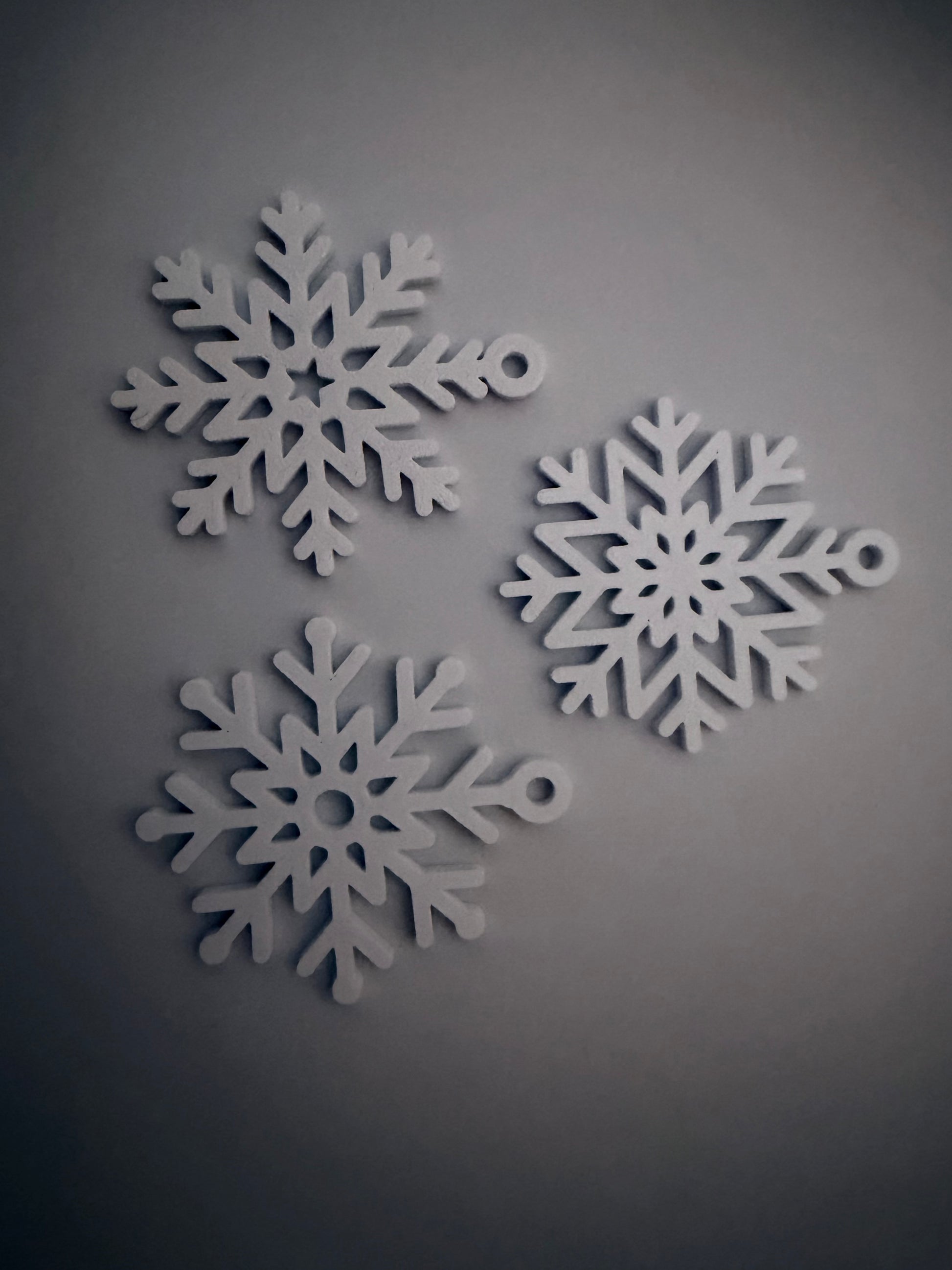 I've created a collection of Christmas snowflake decorations. Each snowflake is 3D printed after you place your order. Nothing is pre-made; everything is printed fresh, ensuring clean and crisp details every time. The designs are intricate and look great on the tree, in windows, or in your festive display. They add a simple, wintry charm without being over the top.
